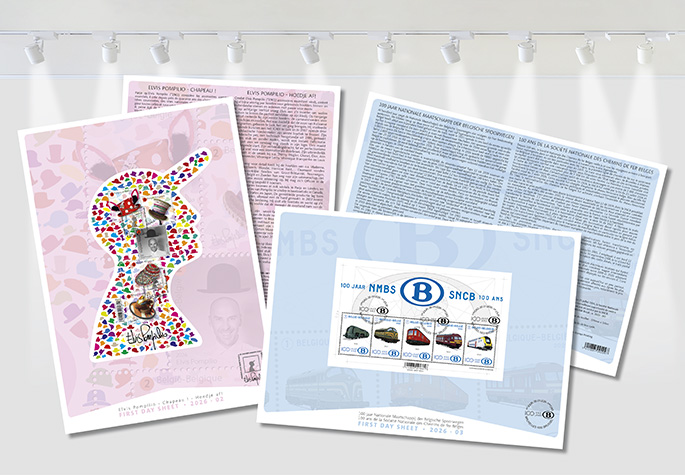 Van elke voorziene gelimiteerde uitgifte, gegomd en zelfklevend, is er een FDS met daarop het volledige postzegelblaadje of één exemplaar van elke unieke postzegel van de postzegelvellen.